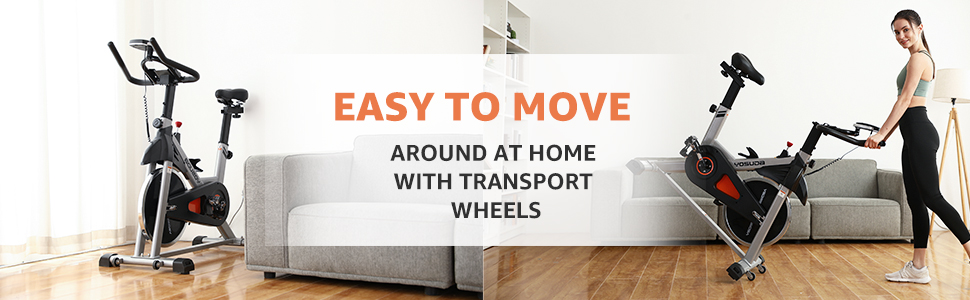 The wheels on the bottom allow you to move the exercise bike effortlessly. Simply tilt and roll out for use. No need for heavy lifting or muscle strain. Making your home into your own personal fitness studio.